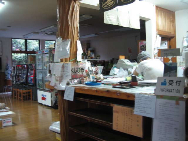 中に入ると受付と売店、食事のできる休憩所がある。