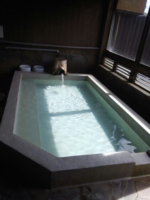 湯の華が浮遊し、適度な硬さの湯質はアトピーや肌荒れに効果がある。冷鉱泉の方にじっくり