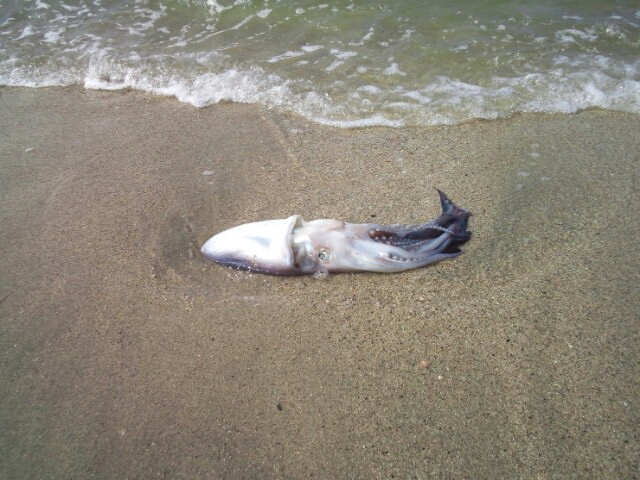 その海岸に打ち上がるまだ食べれそうな無数の蛸。