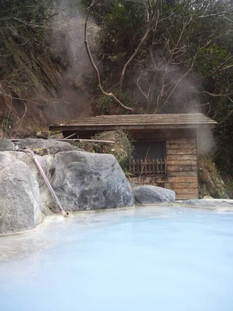 ならないだろうから管理もたいへんであろう。 湯船の奥の小屋が