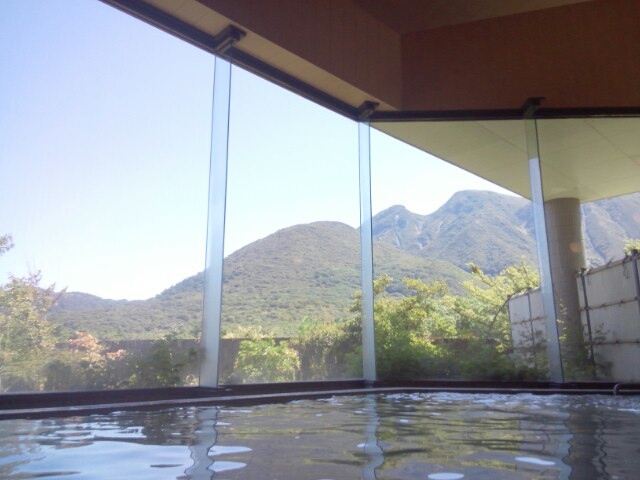 くじゅう連山を眼前に望む絶景露天には、4つの温泉を使った6種類の湯船がある。