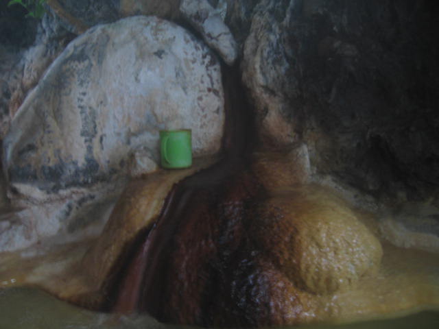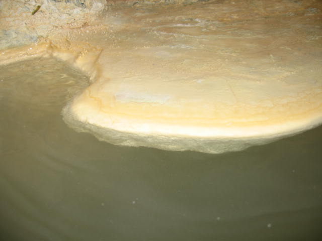 石灰華テラス。手首まですっぽり隠れる厚みがあり、
