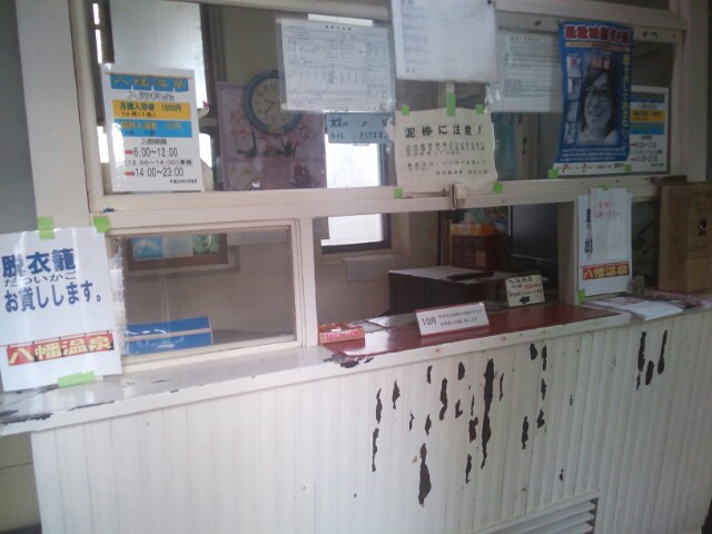 暖簾をくぐると番台があり、入浴料金を入れる投入口がある。財布にはあいにく小銭がなく、近くに自販機も見当たらない。そんな様を見て管理人の御婦人が隣にある住まいから出てきて両替してくれた。感謝!