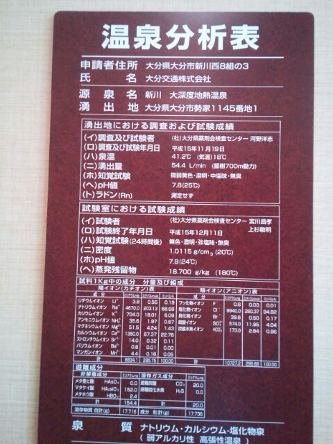 源泉温度54.5℃ PH 値7.9 溶存物質総量640mg / kg