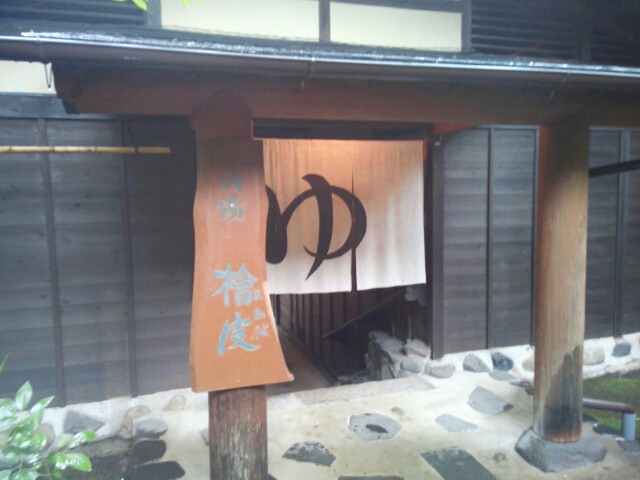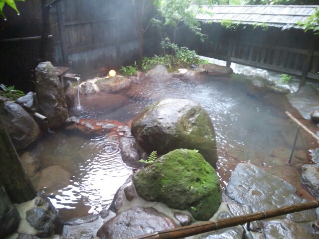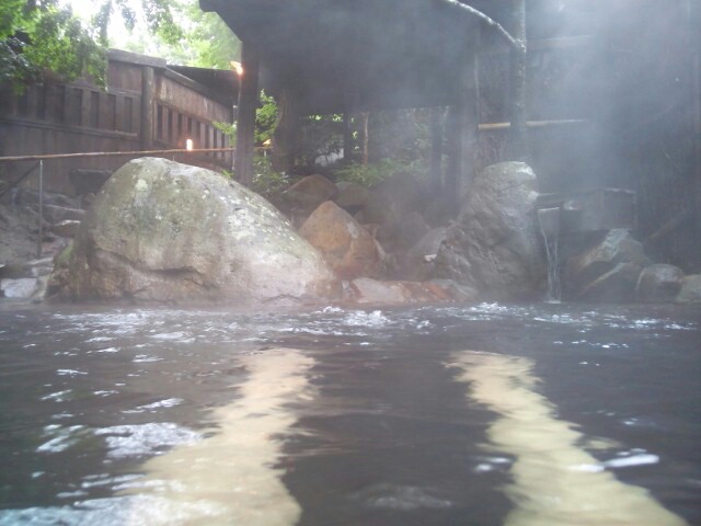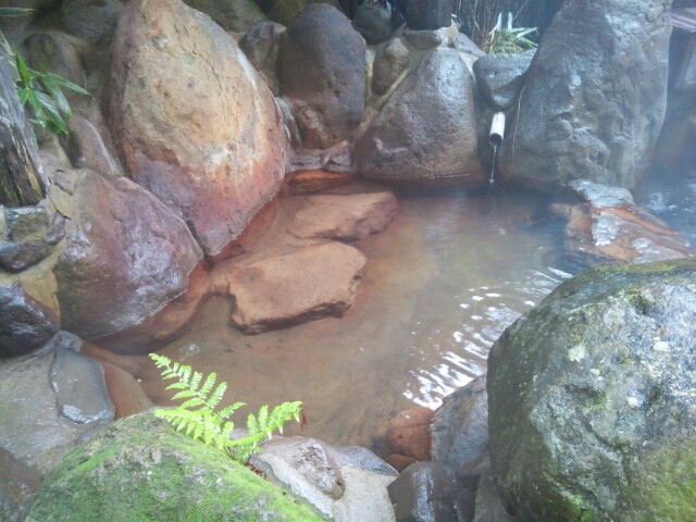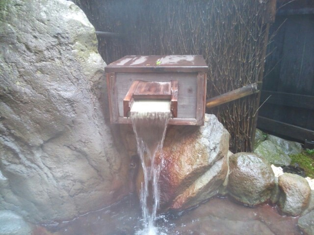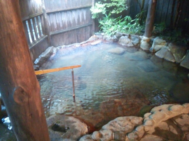 緑褐色の濁り湯で無臭。湯温は41℃位で適温。