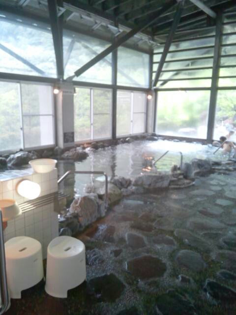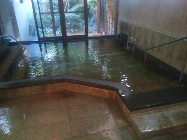 まずは内湯の岩風呂に浸かる。約12名前後が一度に利用できる広さがあり、
