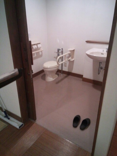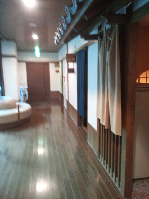 元湯「佐俣の湯」入口から履き物を脱いで上がると売店、レストラン、受付などがある。
