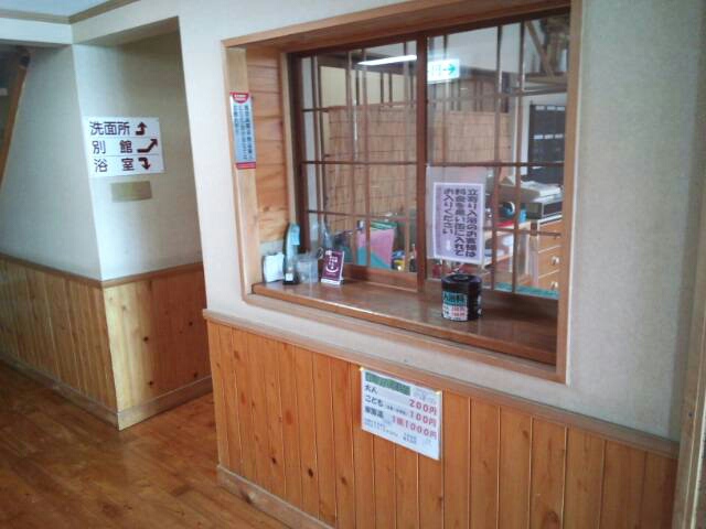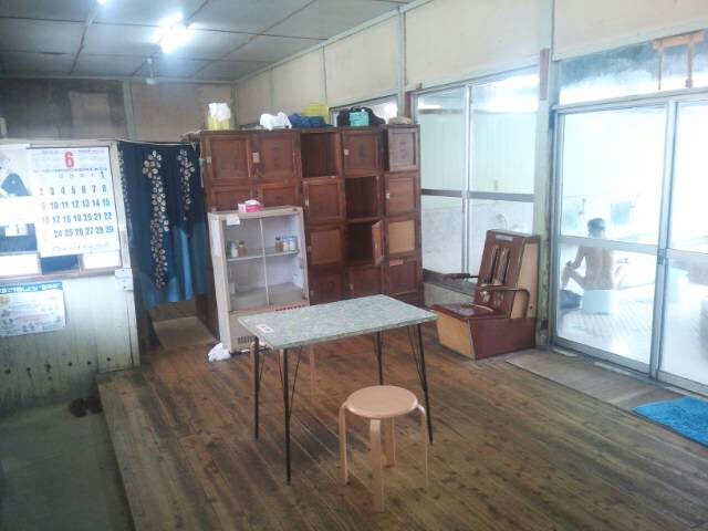 脱衣室のドアを開けて浴場を見た写真。