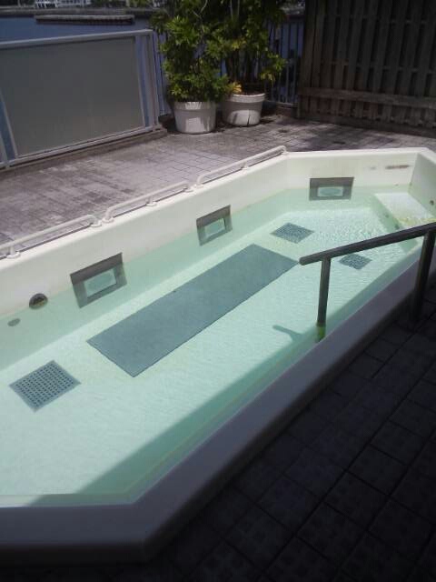 FRP製の露天風呂である。8名くらいが浸かれる広さがある。