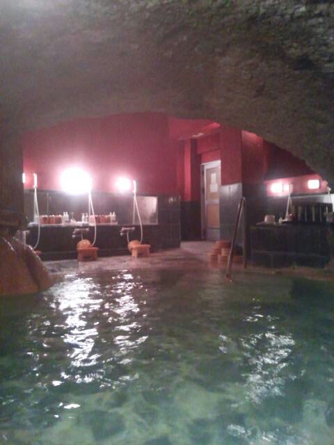 洞窟の湯船の中から見た洗い場。