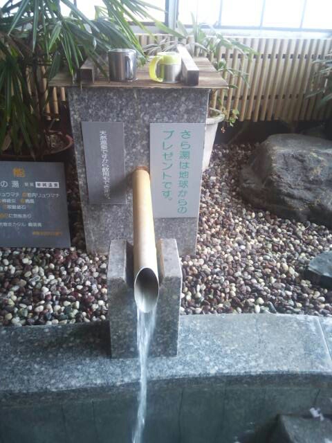 飲泉してみると、咽喉への炭酸感はあまり無かったが、金気味と塩味、酸味を強く感じた。