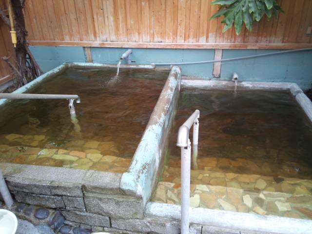 浴槽は2槽に分かれている。湯の温度差を楽しむために分けているのだろうが、