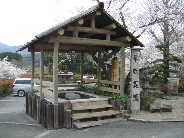 野外の足湯も最高です。湯面に浮かぶ桜の花びらに心打たれます。