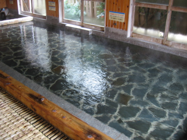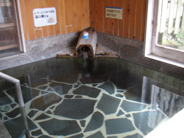湯口付近に白い浮遊物も見られるが、ほぼ無色透明の極上湯質である。