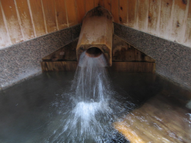 湯口からは新鮮な湯が滾々と注がれている。