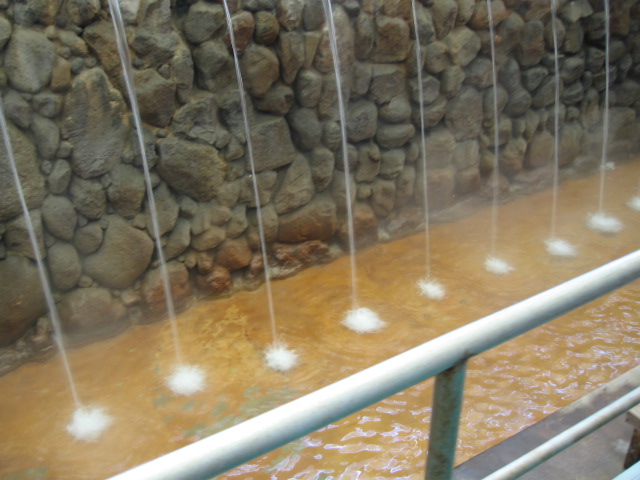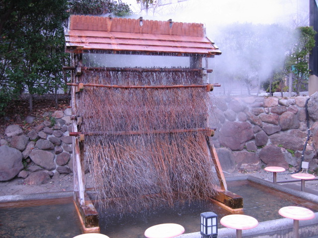 これは流下式塩田の枝条架をヒントに、ひょうたん温泉と大分県が共同開発したもので、シンプルな