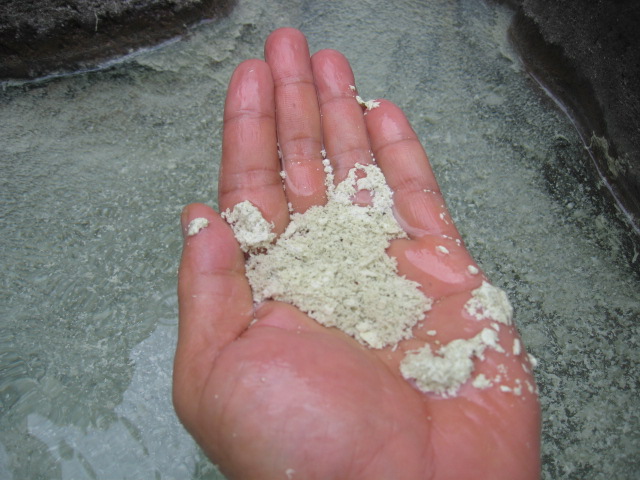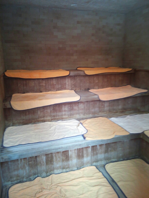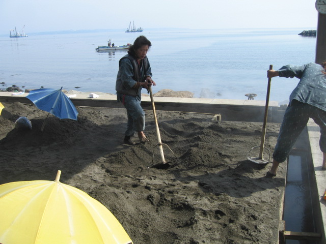 まず、砂場に70度前後の温泉をはり、砂が適温になったところで湯抜きをして砂湯場になるわけだ。