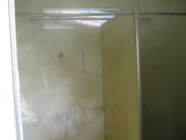 砂湯のあとは、身体に付いた砂を洗い流すためシャワー室に駆け込む。