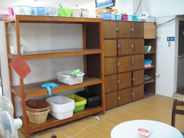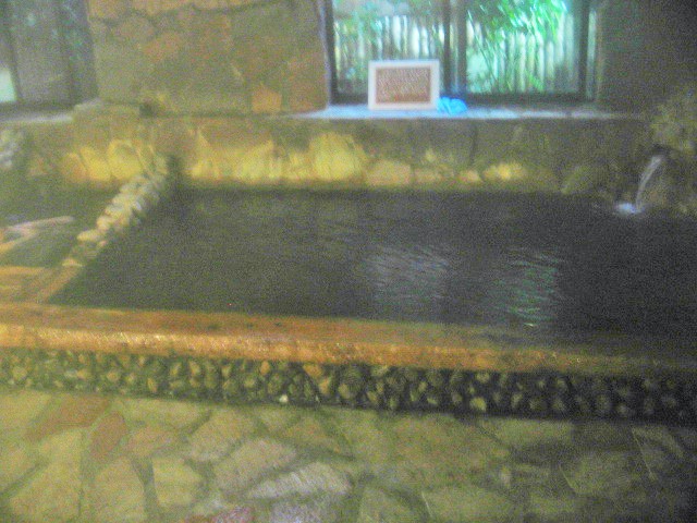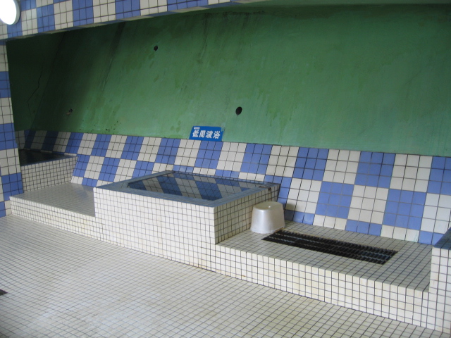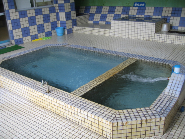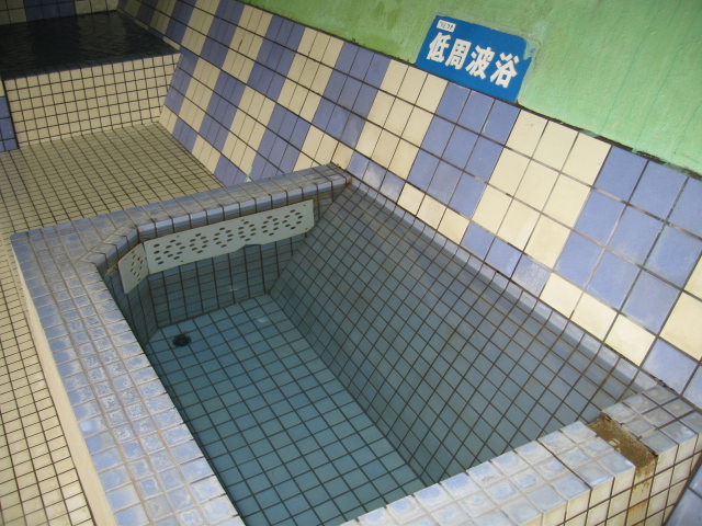 右側に単純泉一人用タイプ、中央に低周波浴、左側に 水風呂があった。