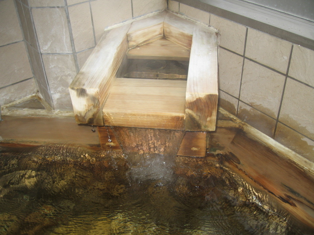 無色透明の湯が勢いよく注がれており湯質がとても新鮮。もちろん源泉かけ流しだ。