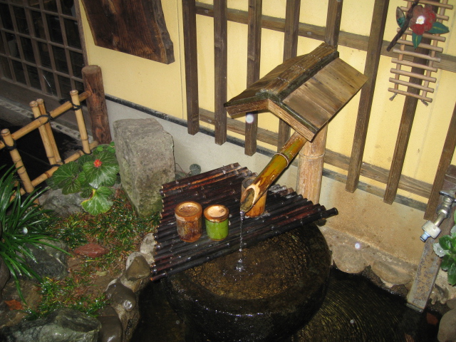 湯口にコップが置かれており、飲泉すると甘塩味のある飲みやすい湯である。