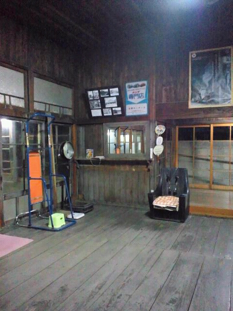 浴場にあるラウンジ入口。フロントで手続きした入浴証明書をここに提出する。時間は10:00前。