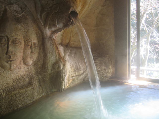 「天降殿」(あもりでん)で入浴。ラウンジがある建物内にあり、男女固定の浴場だ。