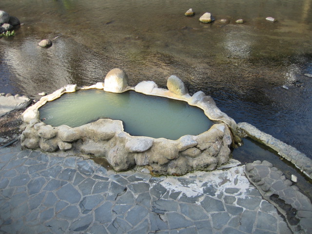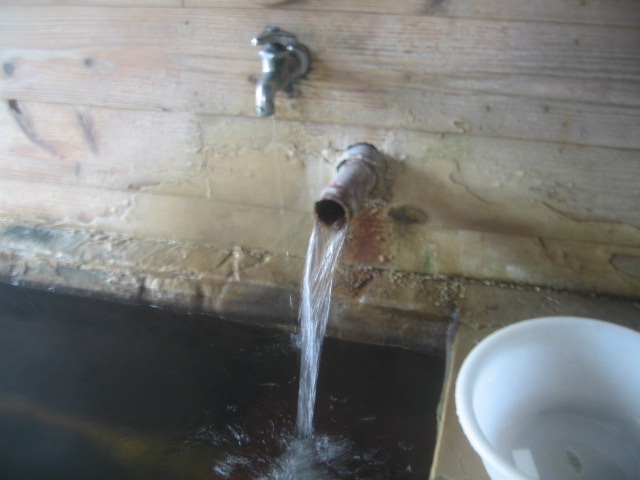 あつめの湯。こちらは45度前後の湯温があり、湯渕には温度調節用の水蛇口が引いてあった。