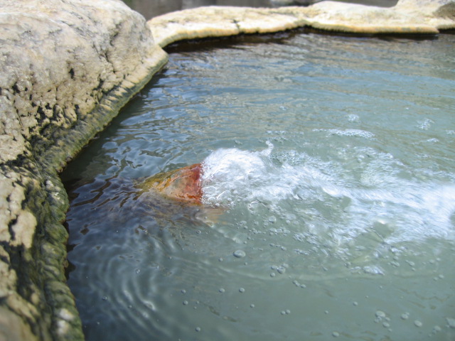 足元湧出泉なので、底部から常にプクプク、パチパチと硫化水素ガスが泡となって弾けている。