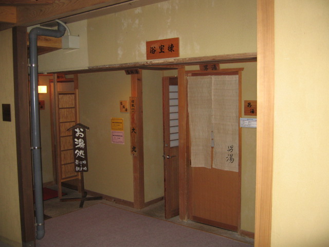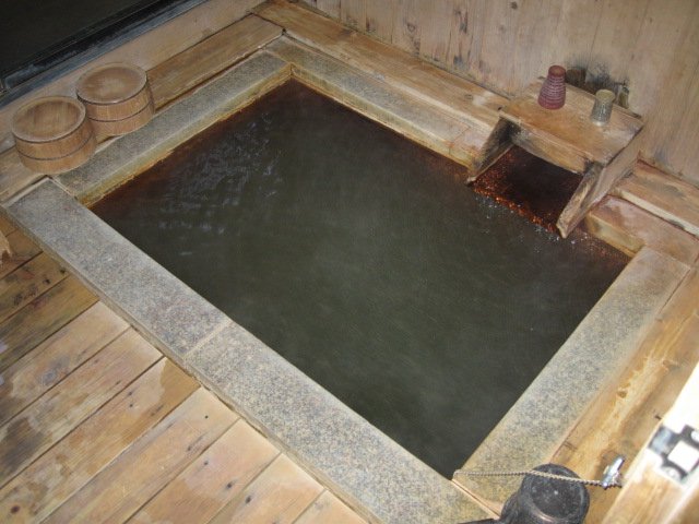 降り着くと、いかにも湯治場といった風情ある脱衣場があり、手前の重々しい男性扉を開けて入る。
