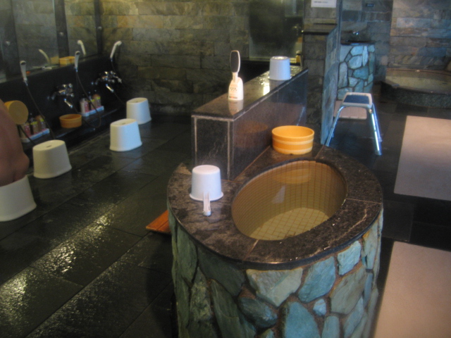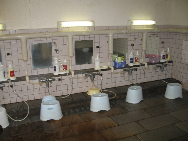 着ていた浴衣を籠に入れ、かけ湯とシャワーで身体に付いた砂を落として
