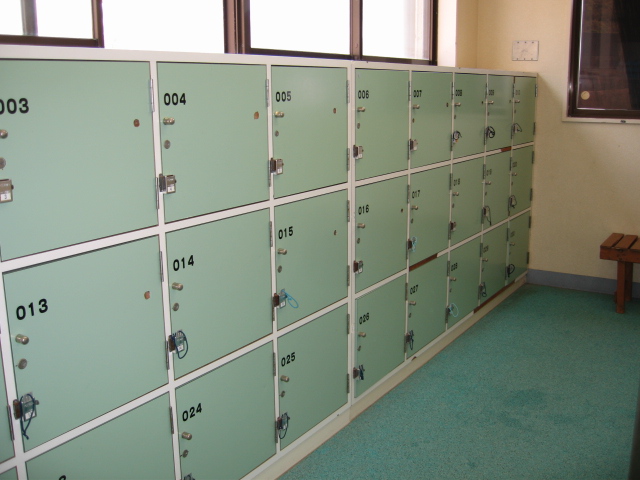 12畳位の広さの更衣室には鍵の付いたロッカーがあり、右側には